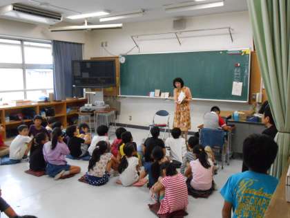 今日は、美術鑑賞教室事前授業に続き、素話がありました。「三枚の鳥の羽」「サルとカニ」「青い青い秋ですよ」「岩しいさん」を読み聞かせしてくださいました。