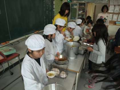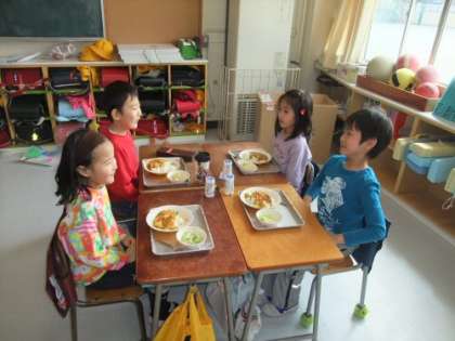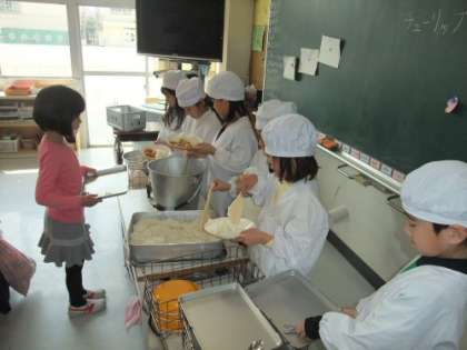 当初、南門の所でグズッていた子が、給食のおかわりがクラスで