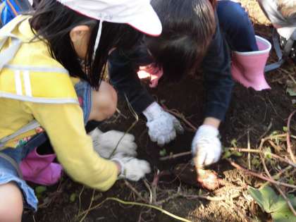 今日、2年生が秋山農園にさつまいも掘りに行きました。「大きなお芋がとれるかな」と心配顔で出発した2年生でしたが、大きなさつまいもをたくさん持ち帰りました。
