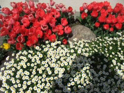 チューリップも咲きそろいました。校庭の桜も五分咲きになり