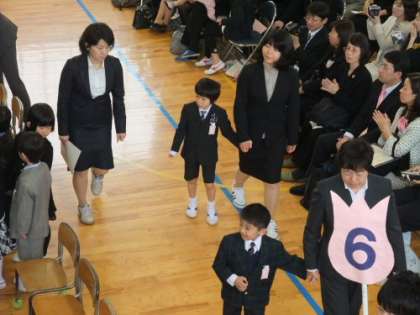 登校して来ました。今日から弦巻小学校の仲間です。明日から元気に登校