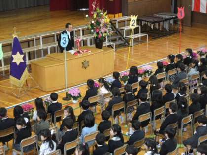 穏やかな天候になりました。春に陽差しをあびて、128名の新一年生が