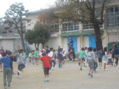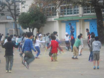 集会の時間に体育朝会がありました。先日までは、長縄に挑戦していましたが、これから短縄に取り組みます。いろいろな技を習得して、音楽に合わせて跳んだりします。今日は、高学年が、あや跳びに挑戦しました。