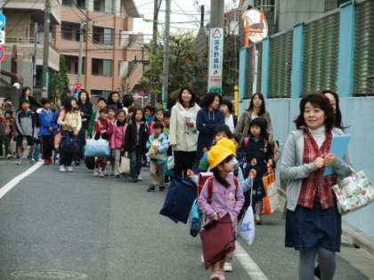 期待に胸を膨らませて、子どもたちが登校して来ました。
