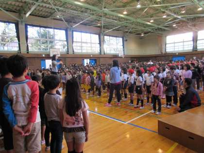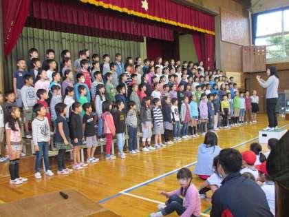 今月の音楽朝会は4年生の「パーム パーム」の合唱発表でした。4年生らしい伸びやかな歌声が体育館いっぱいに響き渡りました。