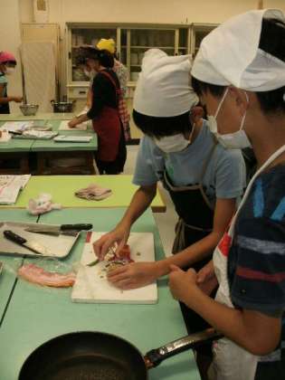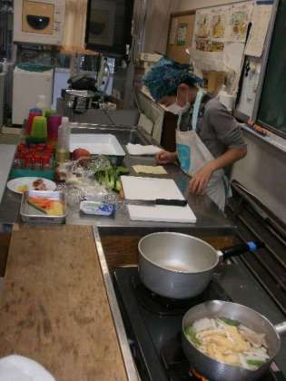 今日、6年生が調理実習を行いました。作ったのは、「野菜のベーコン巻」野菜を茹でて、ベーコンで巻き、フライパンで痛めました。目当ては、手順を考えて効率よく作ろうということでした。上手に焼けました。