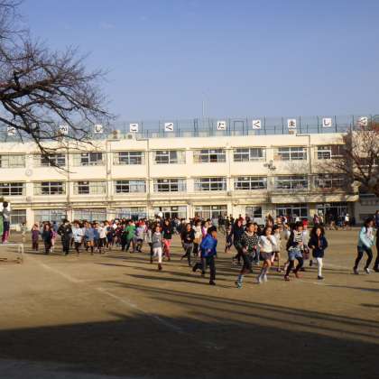 今日、校庭で高学年の体育朝会がありました。弦巻小では、800名近くの子どもたちが在籍しているので、高学年・低学年を分けて体育朝会を行っています。今日は「ランランタイム」でした。おいしい朝の空気をたくさん吸って、元気に走りました。