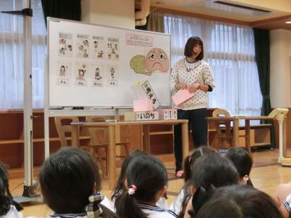 1年生においては、冬休み明けの生活リズムについて、脳の模型を使って勉強しました。