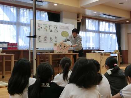 2年生については、1年生と同様に、脳の模型を使って生活リズムの勉強をしました。