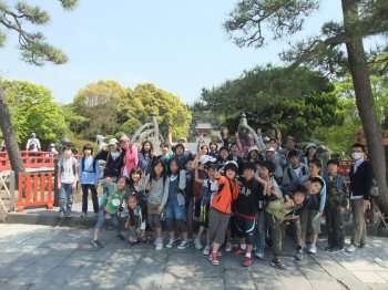 歩き始めました。源氏山公園で、班ごとのオリエンテーリングを