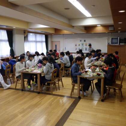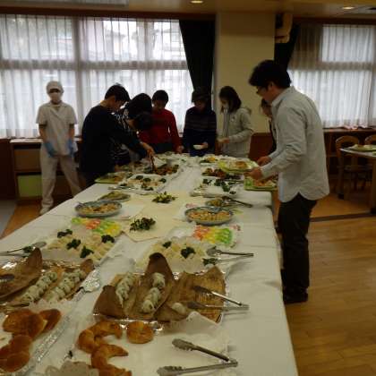 6年生3日目のバイキング給食です。ランチルームのテーブルにはおいしい料理がたくさん並べられました。今日は、6年2組と六組でした。楽しく給食を食べました。
