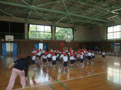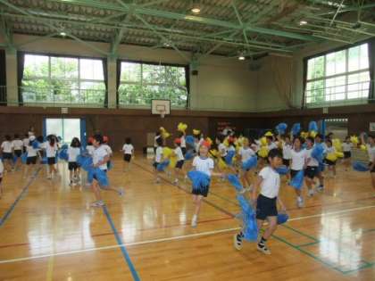 今日も天候に恵まれました。校庭や体育館で練習に余念がありません。