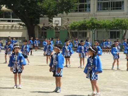 2年生は、PTAの皆様に補充していただいたハッピを着用して