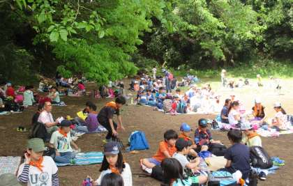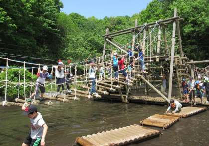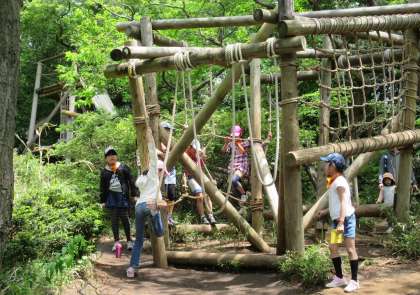 5年生はつくし野フィールドアスレチックへいきました。森の中や池の上にたくさんの遊具があります。すぐ脇には246号線もあるのですが、まるで遊びの森ようです。