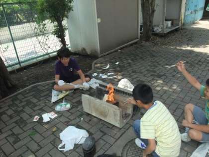 今日から、飯ごう炊飯の練習です。カレーを作る子・ご飯を作る子