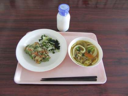 カレーうどん 牛乳 ちくわの磯部揚げ 和風サラダ