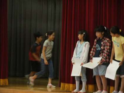 児童集会があると子どもたちは早く来ます。いつもは、25分ギリギリ