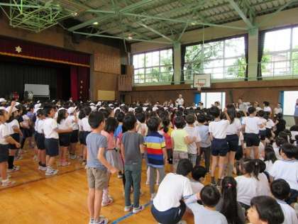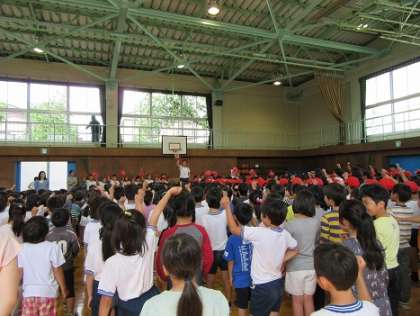 5月11日 運動会の応援歌の練習をしました。紅白分かれて、力強く元気な声が響きわたりました。