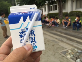 散策から戻りおやつに牛乳を飲みました。冷たくて美味しかったです。