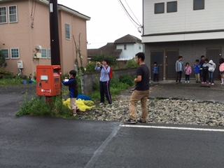学園近くにあるポストにハガキを投函しに行きました。便りが届くのを楽しみにして下さい。