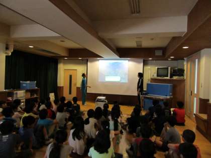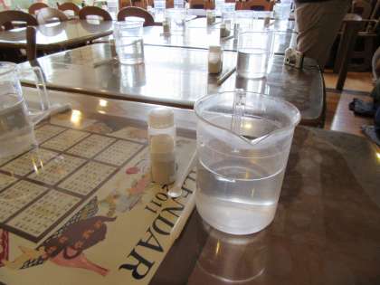 本日、4年生が水道局の水道キャラバンの方々から、実験も踏まえて水道水のお話を伺いました。