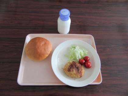 丸パン 牛乳 コロッケ ゆでキャベツ プチトマト