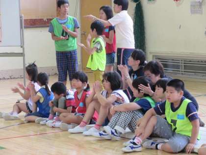 六組は三宿小学校へ出かけました。三宿小学校、旭小学校、山崎小学校の支援学級のお友達との交流会です。ゲームをしたり、ダンスをしたり、歌ったりと楽しい時間を過ごしてきました。4・5・6年生は河口湖でも子ども会で交流しているのでとても仲良しです。