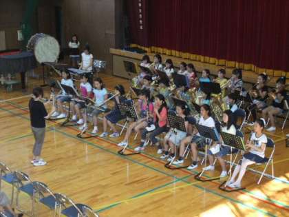 体育館では、吹奏楽の子どもたちの演奏、PTAコーラスを楽しんで