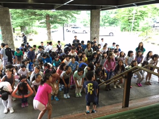 おはようございます。現地は雨雲の中に入ったようで霧雨です。子供達はやや眠そうですが、元気に起きてきました。
