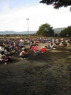 二日目が始まりました。全員が元気です。今日は1063メートルの雨ごい山に登ります。