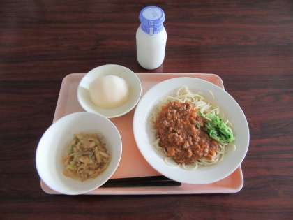 ジャージャー麺 牛乳 野菜の中華ごま味 くだもの(梨)