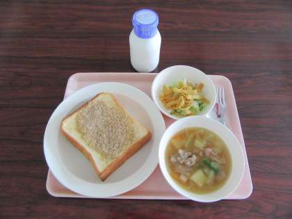 セサミトースト 牛乳 白いんげん豆のスープ パリパリサラダ