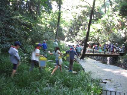 前日の雨が上がり、元気よく学校を出発して、区内の歴史的な場所や渓谷、公園、市場をまわりました。だくさんの内容を一生懸命にお話を聞きメモや質問をしていました。