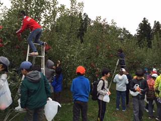 丹精込めて育てたりんごを1人一つもがせてもらいました。