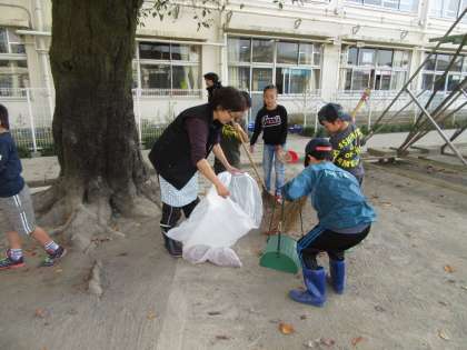 本日は、早朝から3年生が主事さんのお手伝いをして落ち葉はきをしました。自分たちの昇降口をきれいにして気持ち良いスタートを切りました。
