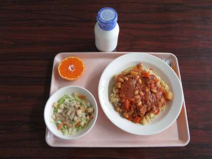 チリビーンズごはん 牛乳 シザーサラダ くだもの(みかん)