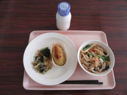 煮込みうどん 牛乳 和風サラダ スィートポテト