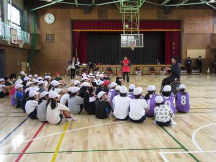 本日はオリンピック・パラリンピック教育の一貫として、アスリートの方をゲストティーチャーに堀江 航 選手を迎えて体験しました。子どもたちは車いすバスケットの面白さだけでなく、素晴らしい生き方や在り方に直にふれることができました。