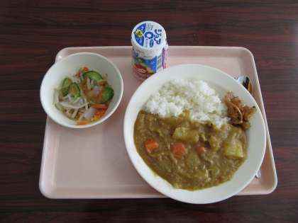 チキンカレーライス ふくじんづけ 乳酸飲料(ジョア) こんにゃくサラダ