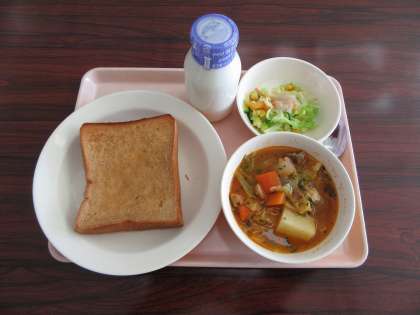 ハニートースト 牛乳 ボルシチ コーンサラダ