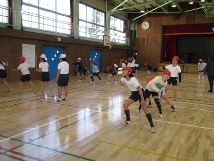 リズムに乗って、チームでダンスを工夫してつくり、寒さも忘れて踊る様子はとても楽しげな表情でした。