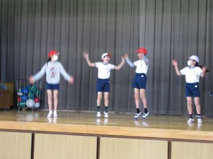 本日は、先週のダンスの振りを各クラスのグループごとに進化させて見せ合いました。