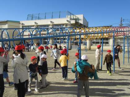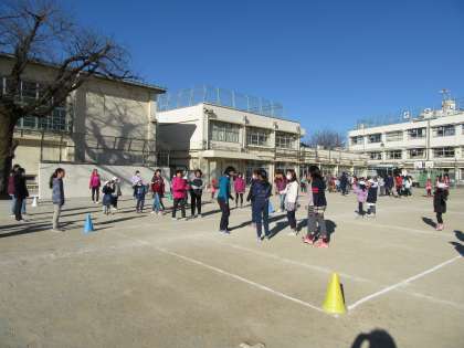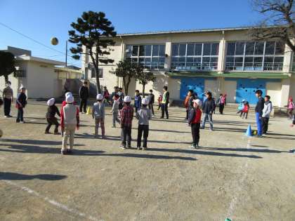今日は、卒業を迎えた6年生と1年生との交流遊びをしました。ドロ警やドッジボールを楽しんで行いました。やさしいお兄さんやお姉さんに教えてもらいながら遊ぶ1年生はとても生き生きしていました。