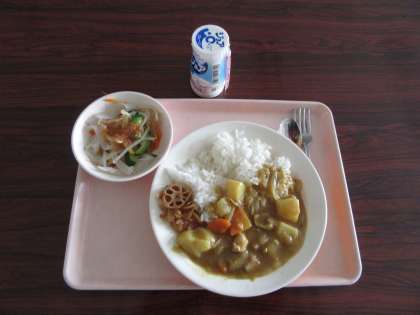 チキンカレーライス 福神づけ 乳酸飲料(ジョア) こんにゃくサラダ