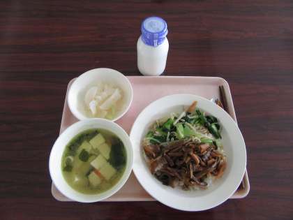 ビビンバ 牛乳 わかめスープ ピリカラだいこん