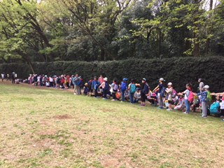 東高根森林公園で、オリエンテーリングの後、楽しいお弁当を食べています。天気も曇りなのでちょうど良い感じです。