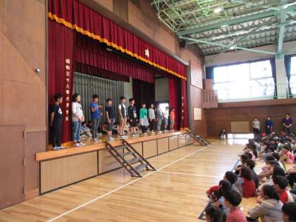 本日は児童集会で委員長紹介を行いました。子供たちは、「学校をよくするために」「あいさつを元気に行える学校」など、立派な決意を発表できました。頼もしい6年生です。