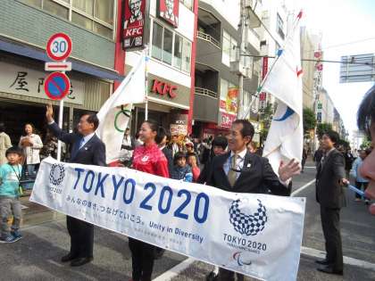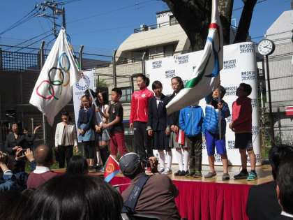 この旗は、2016年10月の小笠原村をスタートし、東京の区市町村を回っています。そのイベントが23日(日)に三軒茶屋で行われました。アンバサダーとして、リオ五輪の