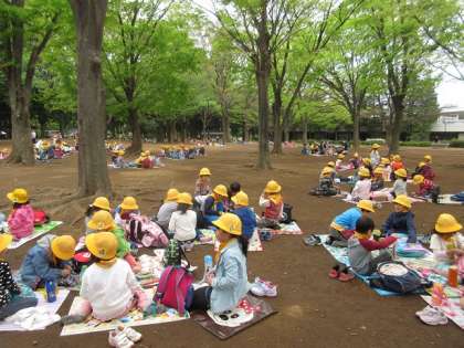 今日は、駒沢公園へ遠足に行きました。昨年度までは馬事公苑でしたが、現在オリンピックに向けての改修工事のため利用できなくなっています。秋にはドングリ拾いへもいきますが、広い公園なのでちがう場所へと行きました。少し肌寒い感もありましたが、元気に遊んできました。