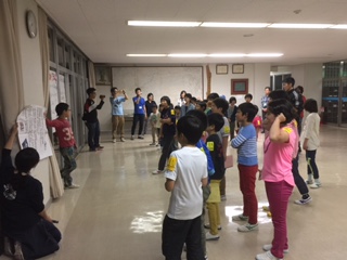 キャンプファイアの予定でしたが、天候が思わしくなくなり、子ども会に変更になりました。三宿小、旭小、山崎小のお友達と楽しい時間を過ごしました。キャンプファイアは明日になりましたが、楽しみです。